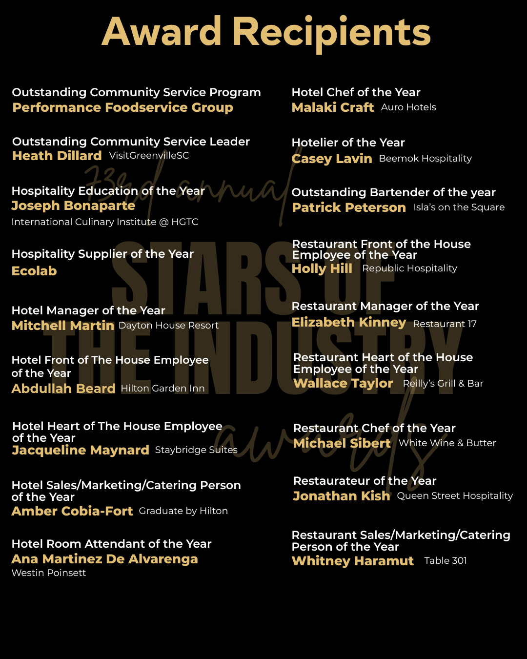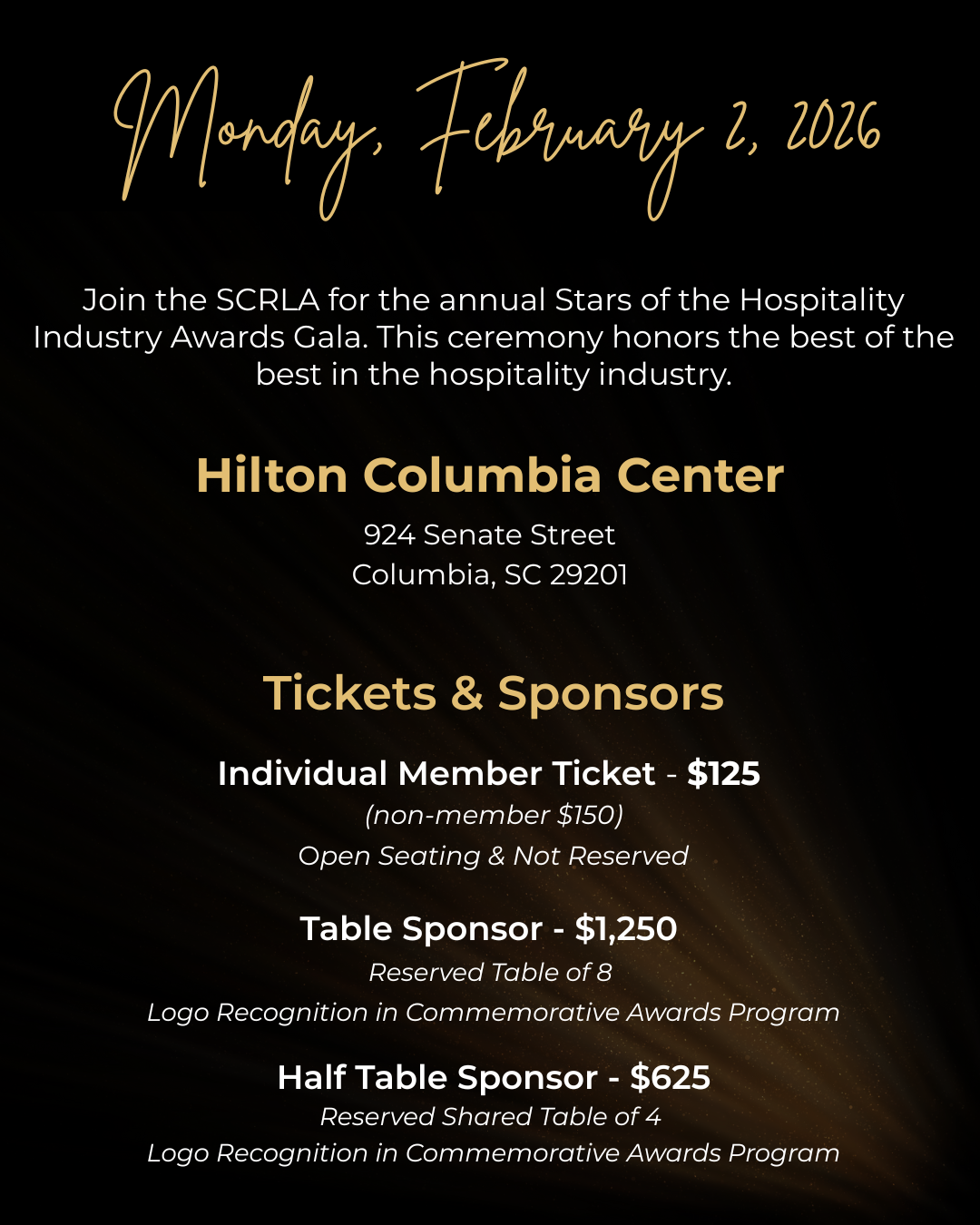 Join hoteliers and restaurateurs from the across the state as we celebrate the spirit of hospitality and honor this year’s award winners.