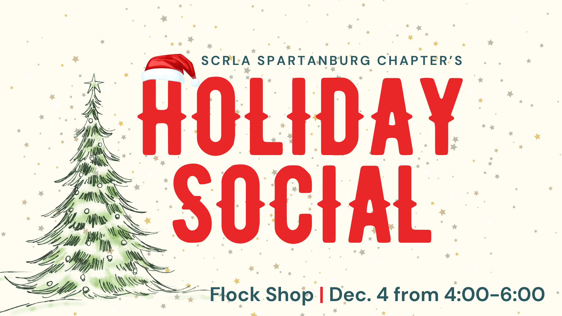 Jingle, jingle, jingle! It's time to mix and mingle at our Spartanburg Chapter's Holiday Social on December 4 at the Flock Shop. Join us from 4:00-6:00 p.m. for cocktails, light hors d'oeuvres, and good cheer as we toast to the holidays and the New Year. This event is open to SCRLA members and prospective members. Pre-registration is required.