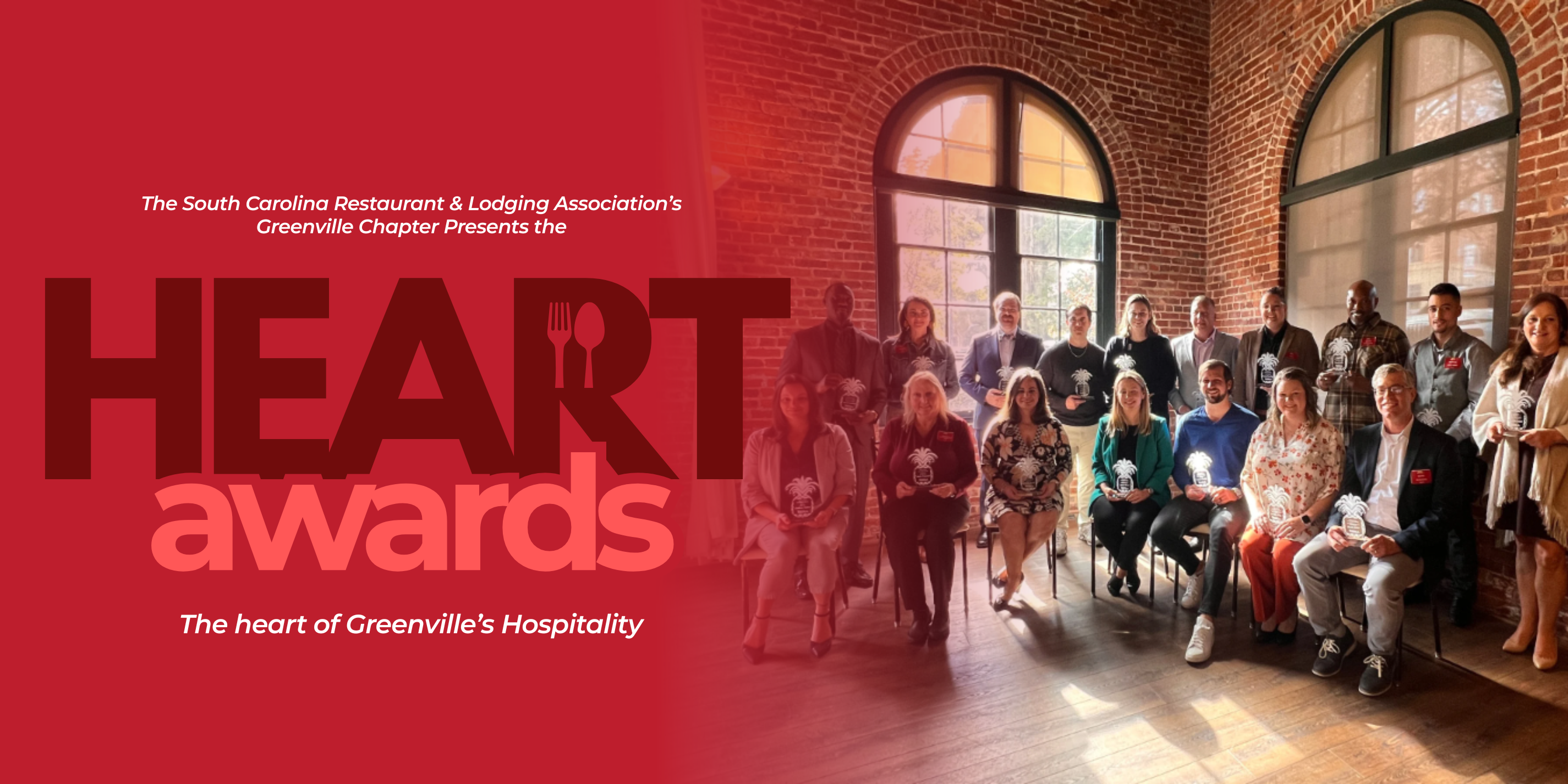 The SCRLA's Greenville Chapter is pleased to host the H.E.A.R.T. Awards (formerly the Upstate Hospitality Awards) on Monday, November 10 at The L by Larkin's. The event will begin at 11:00 a.m. with a champagne reception, immediately followed by lunch and an awards ceremony.